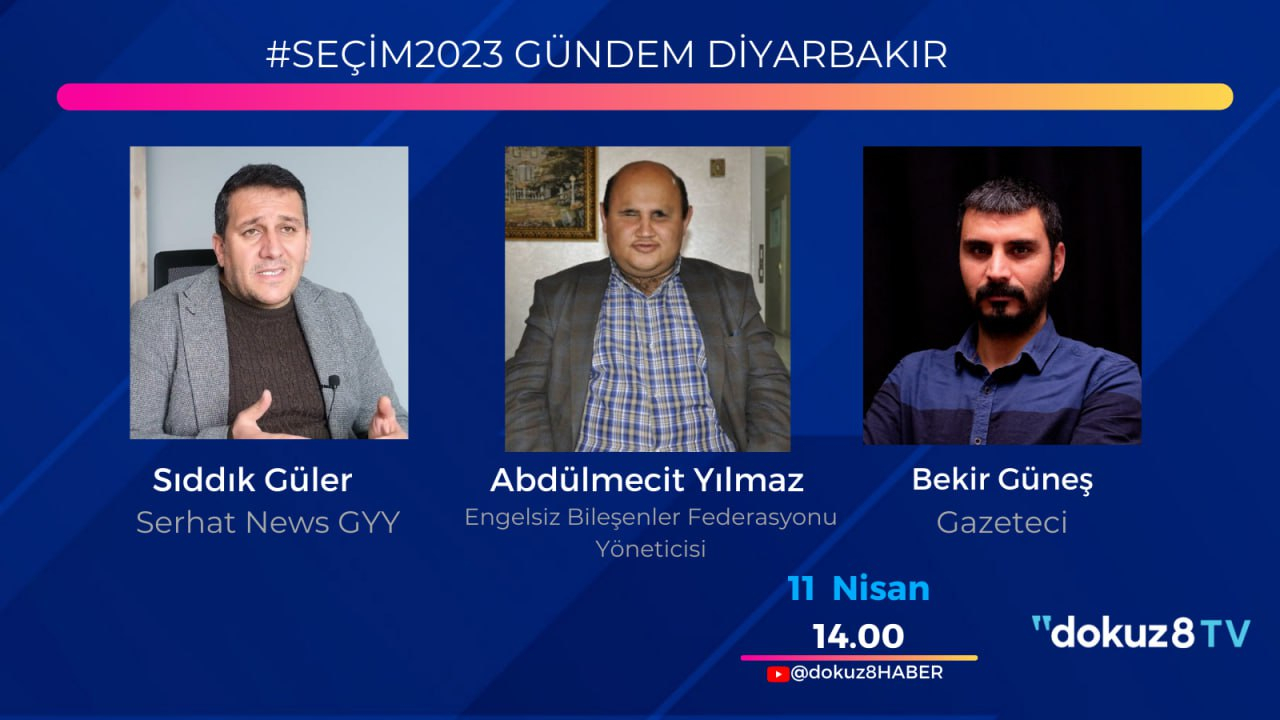 Gazeteci Bekir Güneş’in konukları Dijla Görme Engelliler Derneği ve Engelsiz Bileşenler Federasyonu yönetim kurulu üyesi Abdolmagit Yılmaz ve Serhat Haber Genel Yayın Yönetmeni Seddik Güler.