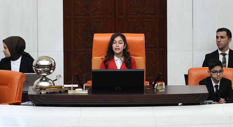 23 Nisan Ulusal Egemenlik ve Çocuk Bayramı dolayısıyla düzenlenen TBMM çocuk özel oturumunu, 6. sınıf öğrencisi Aysima Arslan yönetti.