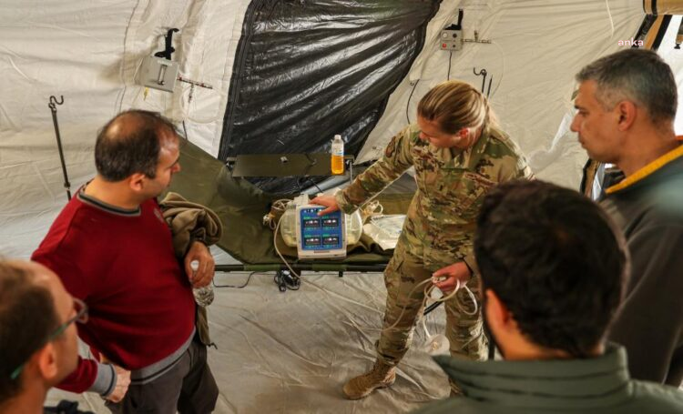 ABD Avrupa Deniz Kuvvetleri ve ABD Uluslararası Kalkınma Ajansı (USAID) ile koordineli olarak 633. Cerrahi Müdahale Derneği, Langley Hava Kuvvetleri Üssü ve Tıbbi Kurulum Destek Ekibi (MIST) yardımıyla Hatay’da sahra hastanesi kuruldu ) yarın Sağlık Bakanlığı’na intikal edecek. ABD Altıncı Filo 61/2, 100 yataklı bir hastane, acil servis ve iki ameliyathanenin taşınmasıyla ilgili. Görev Gücü Komutanı Tuğgeneral Andrew Priddy, “Sahra hastanesi talebini alır almaz ekibimiz işe koyuldu ve hastanenin inşaat ve kurulumunu bir haftadan kısa sürede tamamladı” dedi. Sahra hastanesi, Türk müttefiklerimize yardım etme taahhüdümüzün bir başka örneğidir. Takımımla daha fazla gurur duyamazdım.”