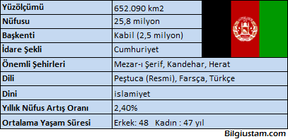 – Çok dağlık bir ülke. Hindukuş dağları doğudan batıya doğru uzanır ve ülkeyi ikiye böler.
