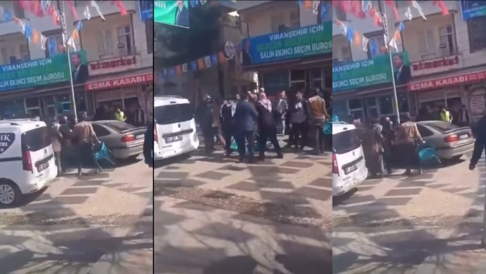 Urfa’nın Viranşehir ilçesinde bulunan AKP seçim bürosunda kavga çıktı. Çevredeki yurttaşlar, iki grup arasındaki fiziki kavgayı telefonla görüntüledi. Görüntülerde, plastik sandalyelerin havada uçuştuğu ve bir kişinin kalabalığın arasına araç ile daldığı görülüyor. Kavganın neden çıktığına dair herhangi bir bilgi elde edinilemedi.