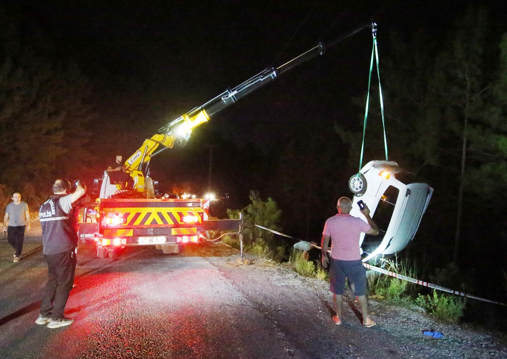 Bektaş Mahallesi’nde trafik kazası ihbarına giden polis ve itfaiye ekipleri, uçuruma yuvarlanmış 07 AGC 074 plakalı hafif ticari araçta boğazı kesilmiş cesetle karşılaştı.