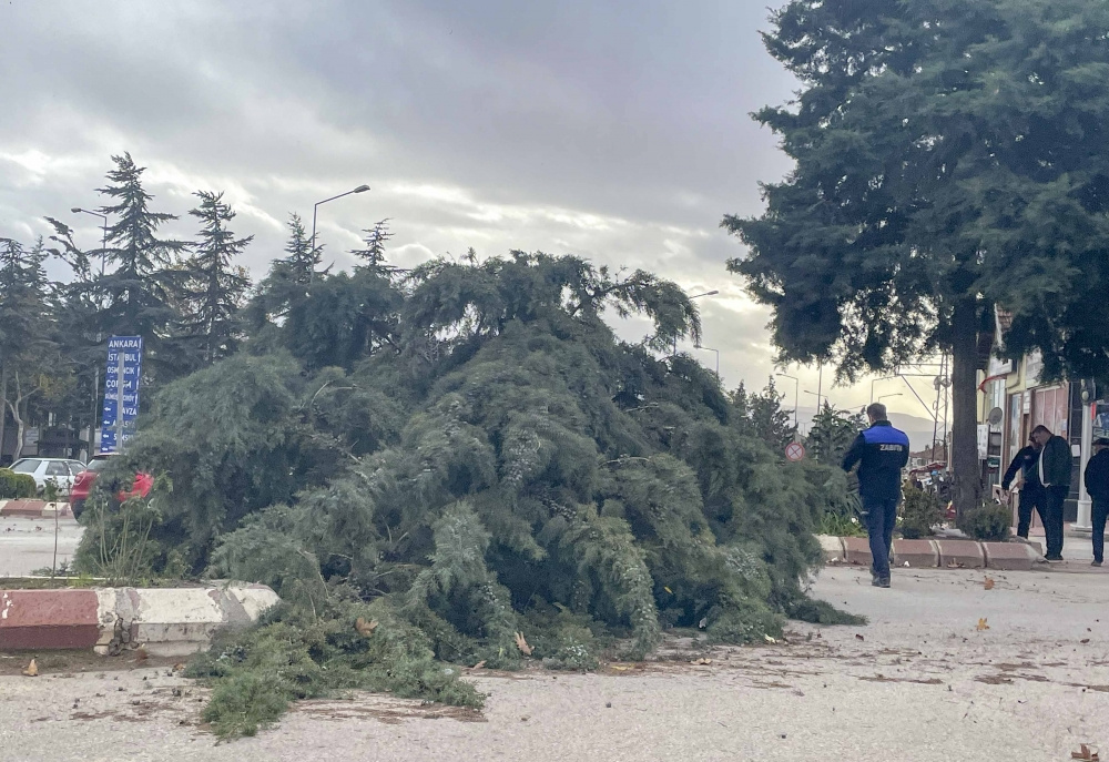 Devrilen ağaç nedeniyle sürücüler zor anlar yaşadı. Vatandaşların ihbarı üzerine bölgeye sevk edilen polis ve zabıta ekipleri çevrede güvenlik önlemi aldı.