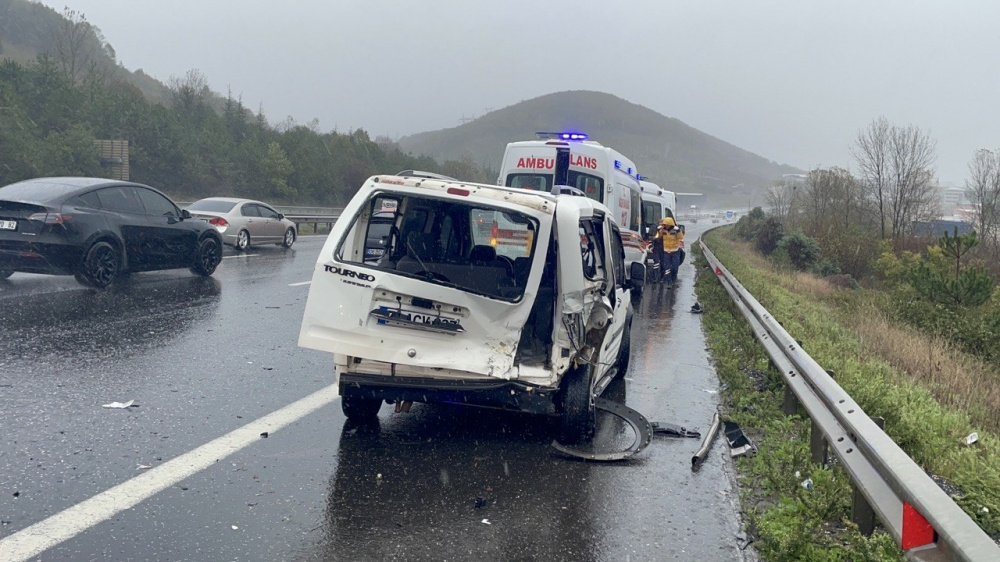 Anadolu Otoyolu’nda kamyonla çarpışan hafif ticari araçtaki 5 kişi yaralandı
