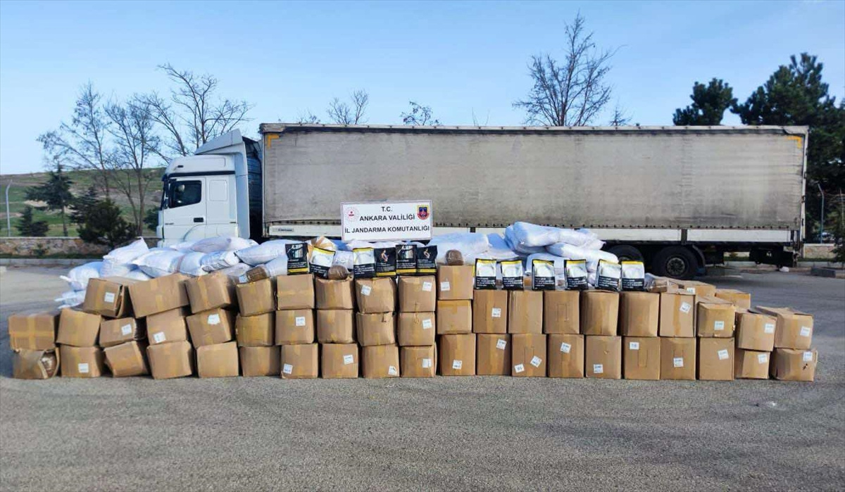Jandarma KOM Şube Müdürlüğü ve Gölbaşı İlçe Jandarma Komutanlığı ekiplerince Gölbaşı ilçesindeki yol kontrol noktasında durdurulan 2 tırda yapılan aramada, 19 ton kaçak tütün ve 128 elektronik sigara ele geçirildi.