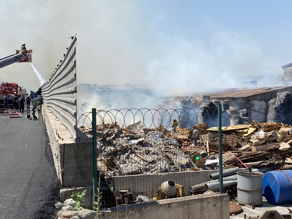 Ankara’nın Kahramankazan ilçesinde, atık kağıt geri dönüşüm fabrikasında çıkan yangına müdahale ediliyor.