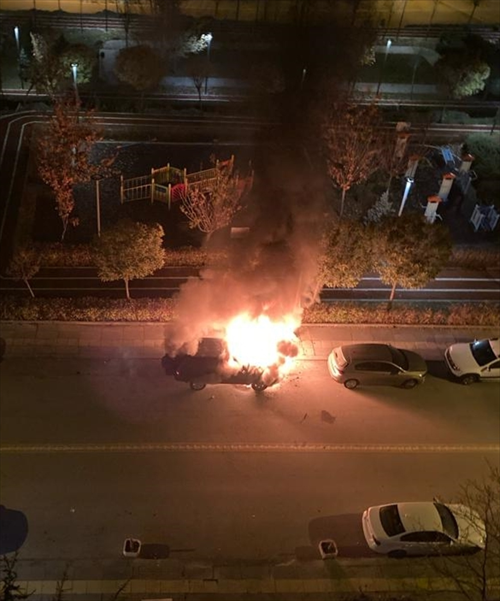 Ankara’nın Çankaya ilçesinde Çukurambar Mahallesi Ayyıldız Parkı önünde park halinde bulunan araçta gece yangın çıktı.