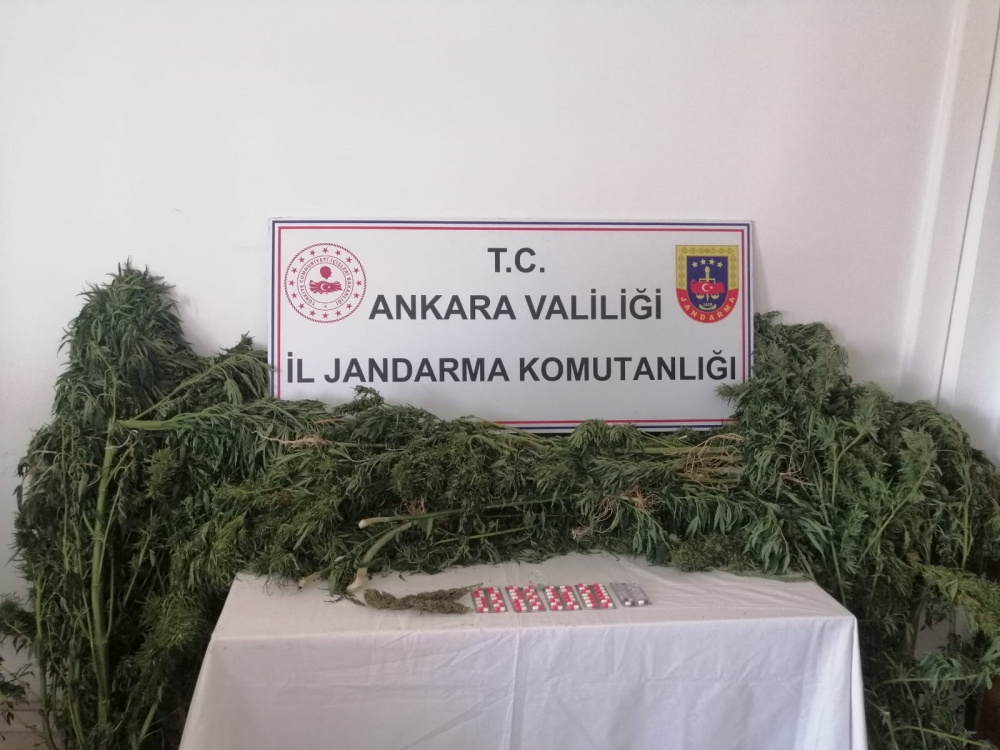 Ekiplerce Ş.K. ve O.T’ye ait olduğu belirlenen hobi bahçelerinde, 178 kök skunk bitkisi, 150 gram kubar esrar, renkli reçeteye tabi 63 uyuşturucu hap ele geçirildi.(AA)