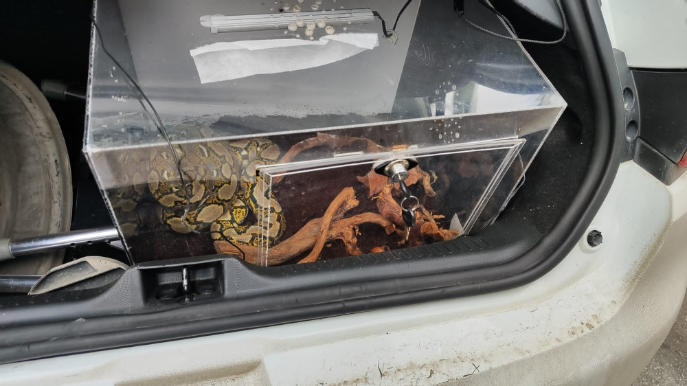 Asayiş Şube Müdürlüğü Yunus Timler Amirliğince, uygulama noktasında kontrol amaçlı durdurulan otomobilin bagajında cam kafeste yılan olduğu görüldü.