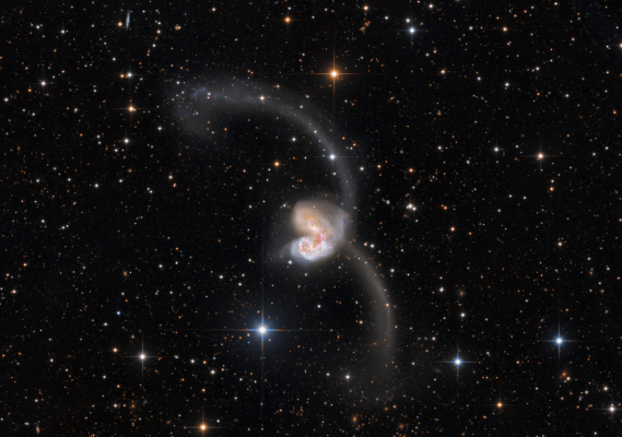 Bu galaksi çiftinin en dikkat çekici özelliği, çarpışma sonucu ortaya çıkan uzun ve ince yıldız-gaz kuyruklarıdır. Bu yapılar: