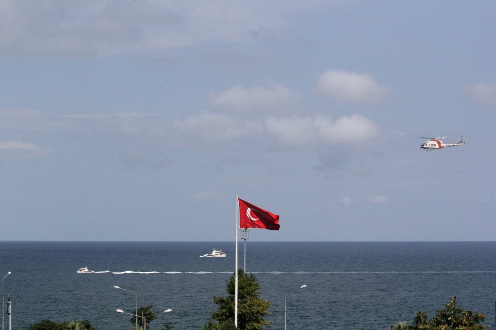 Deniz polisi ve Sahil Güvenlik ekiplerinin denizde yaptığı arama çalışmalara helikopterle havadan destek verildi.
