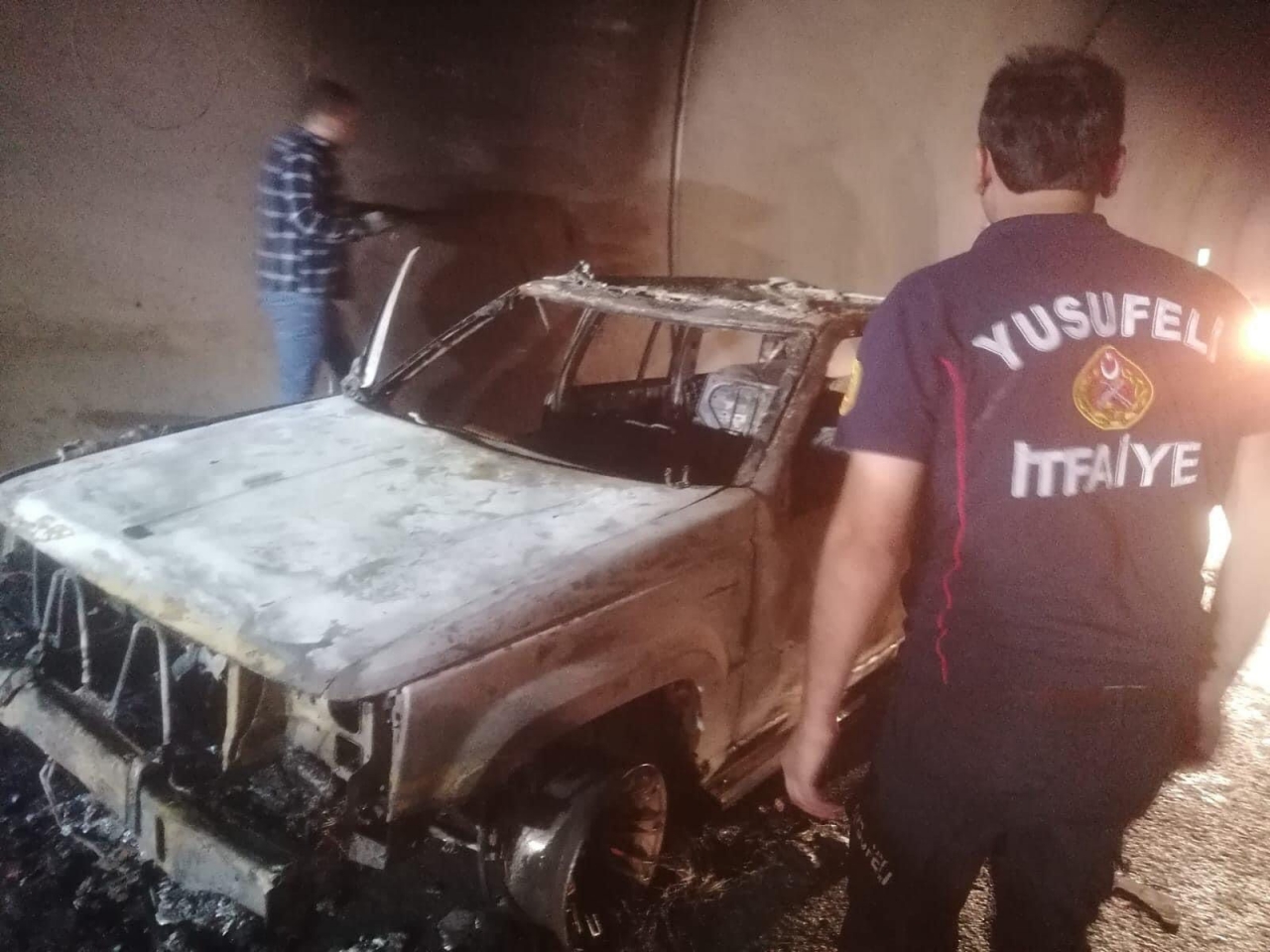 Yusufeli-Artvin kara yolu Merkez Viyadüğü mevkisindeki T13 tüneli içinde, Önder Köse’nin kullandığı 06 BCH 402 plakalı otomobil bilinmeyen nedenle alev aldı.