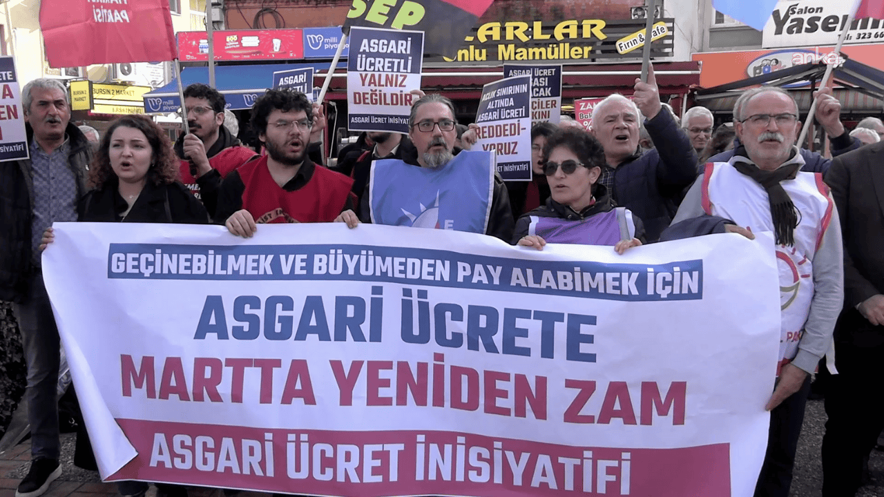 Asgari Ücret İnisiyatifi, İzmir’in Karşıyaka ilçesinde düzenlediği basın toplantısında mart ayında asgari ücrete yeniden zam yapılması çağrısında bulundu. İstanbul, Ankara ve İzmir’de eş zamanlı okunan açıklamayı Serap Gülhan Gündüz okudu.