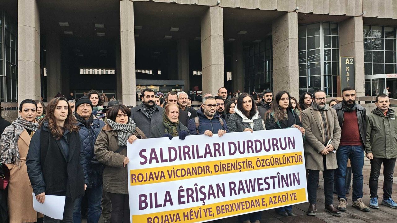 Ankara Adliyesi önünde toplanan hukukçular, “Saldırıları durdurun, Rojava vicdandır, direniştir, özgürlüktür” yazılı pankart açarak Suriye’nin kuzeyindeki gelişmeleri protesto etti. ÖHD Ankara Şube Eş Başkanı Çiğdem Kozan tarafından okunan açıklamada, Suriye’nin yeniden kapsamlı bir savaş sarmalına itildiği ve jeopolitik çıkarlar doğrultusunda sürdürülen politikaların sivilleri ağır hak ihlalleriyle yüz yüze bıraktığı ifade edildi. Bölgede işkence, kaçırma, zorla yerinden etme ve katliam riskinin giderek arttığı kaydedildi.