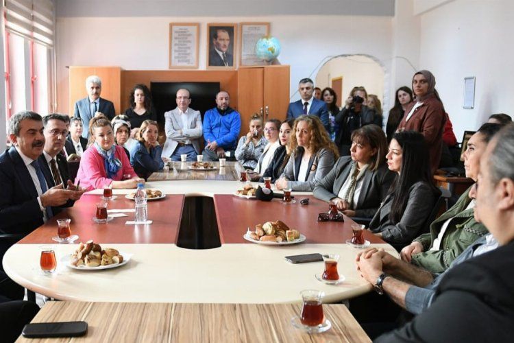 Öğretmenlerin görüş, öneri ve beklentilerini alan Bakan Yusuf Tekin, okula sınıf ziyaretleri yaparak öğrencilerle sohbet etti.