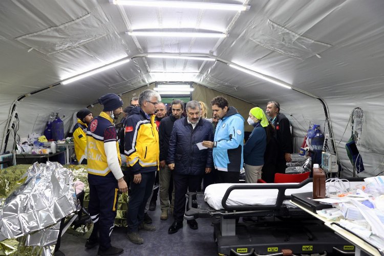 Tüm müdürlüklerdeki sahra hastanelerinin hastalara gerekli hizmeti vermeye devam ettiğini anlatan Bakan Koca, “Bu üçüncü depremde 6 Şubat depreminden sonra hizmetlerine devam eden bazı sağlık kuruluşlarımızda bazı çatlaklar fark edildi. İncelenemiyor. Şu anda detaylı ve tedbir amaçlı olarak hastalarımız yaralılarımıza yönlendirilmiştir.Hastalarımıza, bölge halkına ve tüm hemşehrilerimize geçmiş olsun dileklerimi iletiyorum.Allah sağlık ve sıhhatle acılarımızı dindirsin. sıhhat, yeni acılar ve dertlerden muhafaza eyle.”