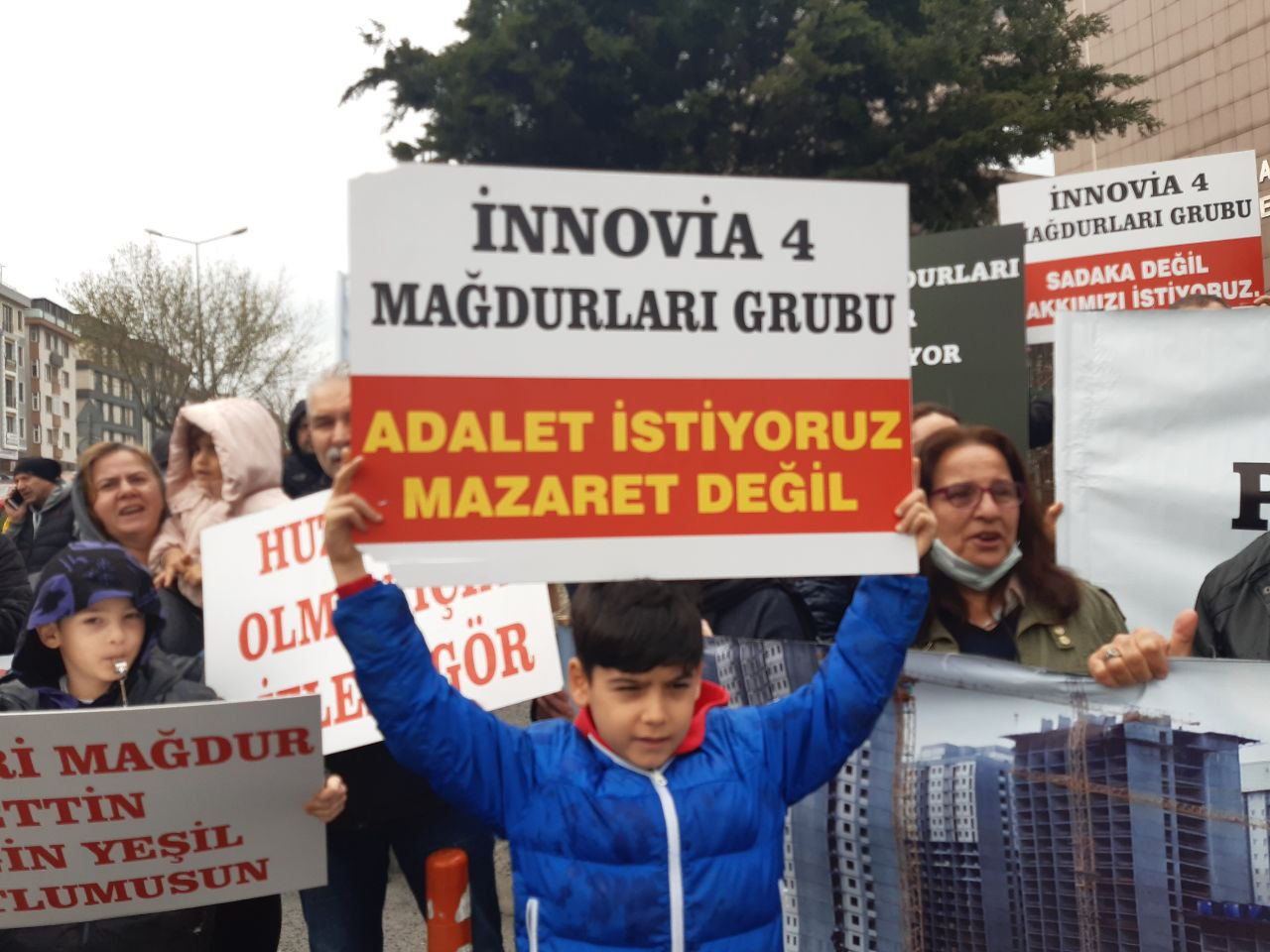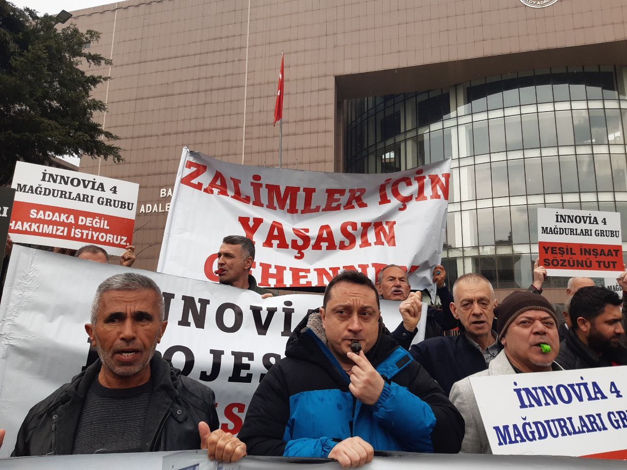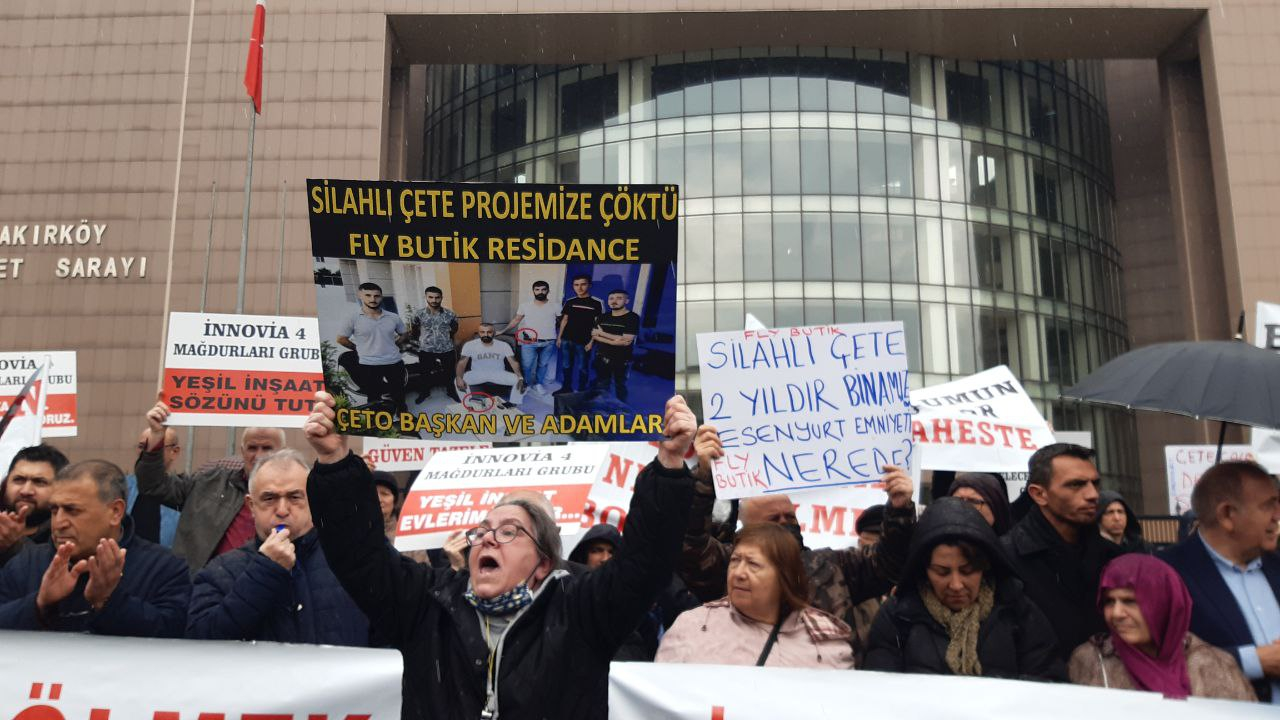 12 yıl önce Esenyurt’ta Adalet ve Kalkınma Partisi’nin eski Belediye Başkanı Necmi Kadıoğlu yönetiminde, Esenyurt’ta 30 bin, İstanbul’da 100, Yeşil Holding’in Innovia 4’ü, Esenyurt kurbanları Osmanli İnşat, FLY kurbanları Butik, Esenyurt Şehirspor’un mağduru Türkiye’de 300 bin kişi konut mağduru olduğu için hak mücadelesi veriyor.