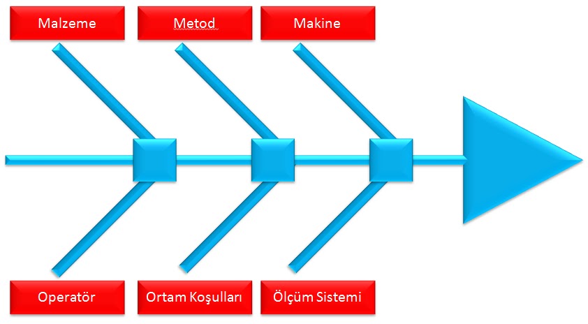 * Araştırılacak konuya neden olabilecek olası ana ve alt nedenler grafiğin ilgili bölümlerine eklenmiştir.