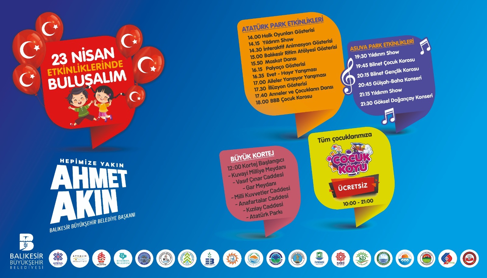 Balıkesir Büyükşehir Belediyesi ve 20 ilçe belediyesi, 23 Nisan Ulusal Egemenlik ve Çocuk Bayramı’nı kutlama hazırlıklarını büyük bir titizlikle sürdürüyor. Başkan Ahmet Akın liderliğinde, şehir genelinde çeşitli etkinlikler planlanıyor ve coşkulu bir kutlama atmosferi oluşturulması hedefleniyor.