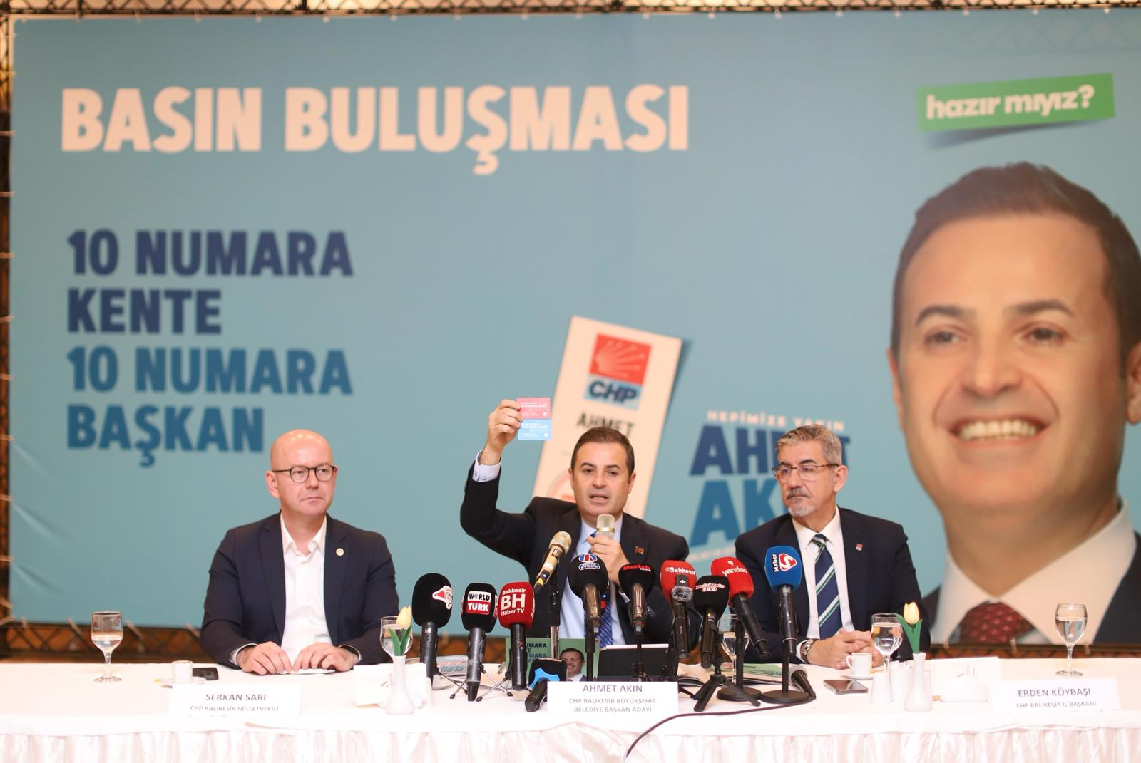 Balıkesir Büyükşehir Belediye Başkan Adayı Ahmet Akın, ev sahipliği yaptığı Basın Buluşması’nda, “Balıkesirimiz kasaba değil, Büyükşehir olmayı hak ediyor. Ayrım yapmadan herkesin yanında olacağız. Balıkesir Planlama Ajansı, şehrin 2050’ye kadar yol haritasını çıkaracak. Balıkesir’de su ucuzlayacak ve çeşmeden içilecek. 10 Numara Kart’la ihtiyaç sahibi hemşerilerimize, emeklilerimize sosyal destek vereceğiz. Projelerimizin ayrıntılarını 25 Şubat Pazar günü, Büyük Balıkesir Buluşması’nda anlatacağız. Tüm hemşerilerimi davet ediyorum” diye konuştu.