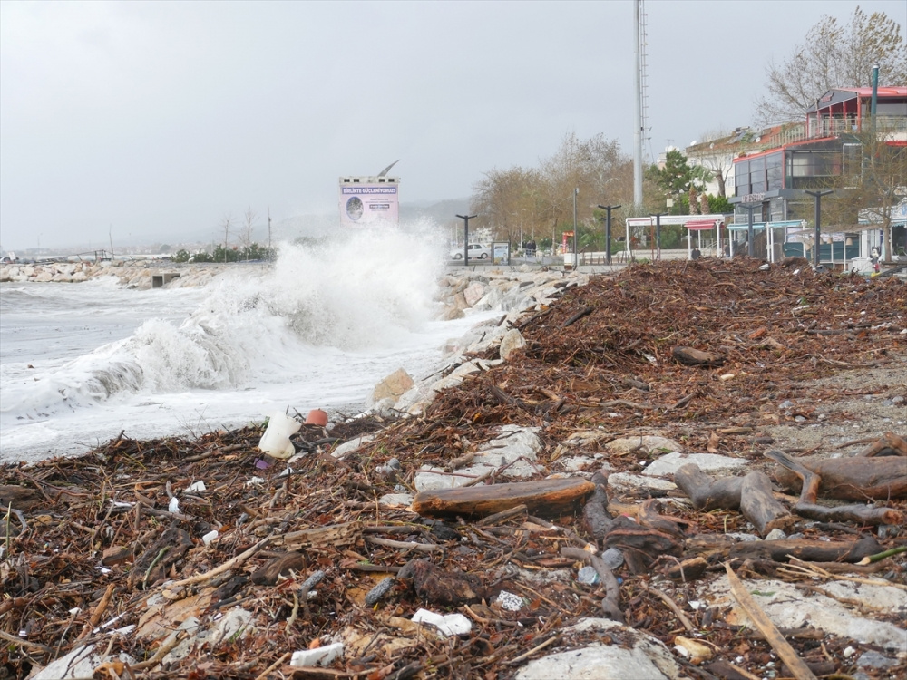 Kuvvetli rüzgarın dev dalgalar oluşturduğu Altınoluk Mahallesi’nde ise denizin taşması sonucu sahilde sürüklenen büyük ağaç parçaları, kordondaki iş yerlerine zarar verdi.