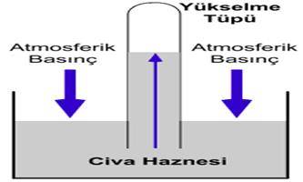 Cıvanın ağırlığı atmosfer basıncından azsa, cam tüpteki cıva seviyesi yükselir (yüksek basınç). Yüksek basınç alanlarında, hava, çevredeki alanlara akabileceğinden daha hızlı bir şekilde Dünya yüzeyine doğru düşer. Bir yüzeydeki hava moleküllerinin sayısı arttıkça, o yüzeye kuvvet uygulayan daha fazla molekül vardır. Tankın üzerindeki havanın ağırlığı arttıkça cıva seviyesi daha yüksek bir seviyeye çıkar.