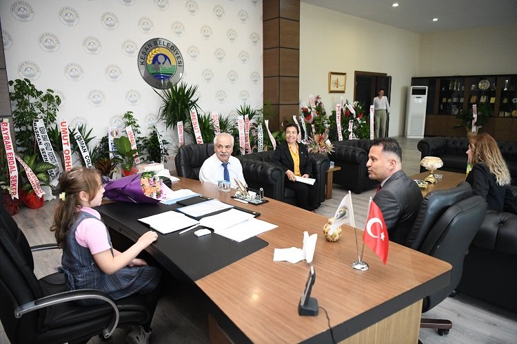 Keşan Belediye Başkanı Op. Dr. Mehmet Özcan, başkanlık makamını Kurtuluş İlkokulu 4. Sınıf öğrencisi Ceren Şen’e devretti.