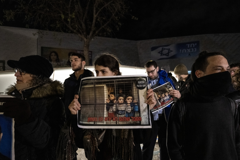 Yaklaşık 20 kişilik İsrailli grup, Batı Kudüs’ün merkezinde yer alan Hoşgörü Müzesi önünde toplandı.