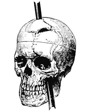 1848’de 25 yaşındaki Phineas Gage, bir demiryolu şirketinde duvarcı olarak çalışmaya başladı. Operasyonu sırasında kayaları yerinden oynatmak için patlamalar gerekti. Bu eylem, patlayıcı toz ve bir demir çubuk içeriyordu. Bir saniyelik dikkati dağılınca barutu fırlattı ve sopa sol çenesine girdi. Kafatası delinmiş ve sopa beyninden geçerek yüksek bir hızla kafasının tepesinden çıkmış. Günümüzün modern yöntemleri, bu olaydan etkilenen bölgenin prefrontal korteks olduğunu ortaya koydu.