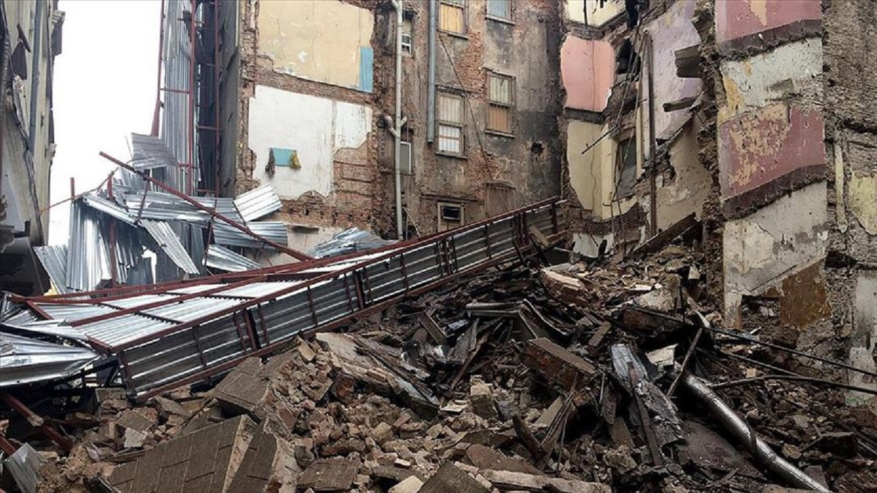 Beyoğlu’nda çöken tarihi binanın enkazının kaldırılmasına başlandı.