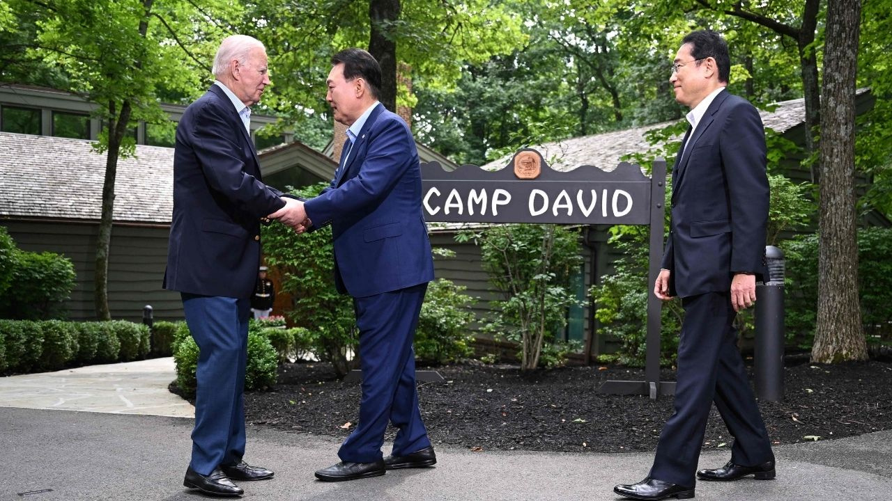 Biden, Güney Kore Devlet Başkanı Yoon Suk-yeol ve Japonya Başbakanı Kişida Fumio ile Maryland eyaletindeki Camp David’de Kuzey Kore’nin oluşturduğu tehdide karşı üçlü zirvede bir araya geldi.