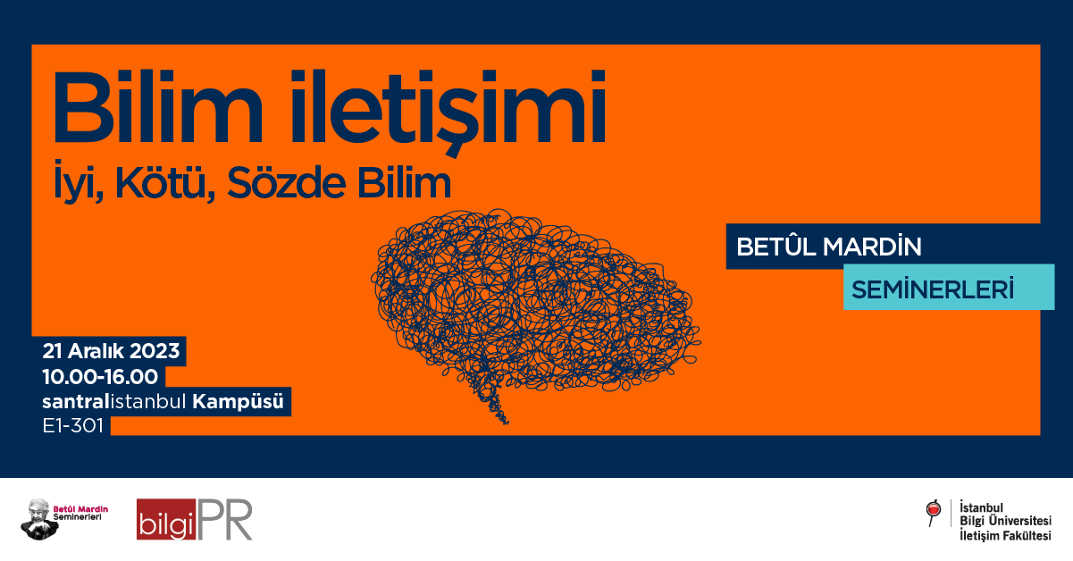 İstanbul Bilgi Üniversitesi İletişim Fakültesi “Betül Mardin Seminerleri” kapsamında önde gelen iletişimcileri ve profesyonelleri ağırlayarak iletişim sektöründeki güncel gelişmeleri değerlendirmeye devam ediyor. Bu yıl 15.si düzenlenen seminerde, bilim insanları ile toplumun farklı kesimlerini buluşturan ve etkileşime sokan “Bilim İletişimi” konusu multidipliner bakış açısıyla tartışılacak. Seminer, 21 Aralık 2023, Perşembe günü saat 10.00-16.00 arasında Santral istanbul Kampüsü’nde gerçekleşecek.