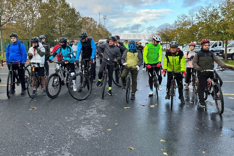 Soğuk ve fırtınalı havaya rağmen Yenikapı Bisiklet Evi önünde toplanan bisikletçiler, akan trafik içinde Yenikapı sahilinden Sirkeci istikametine doğru pedal çevirdi.