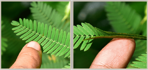 Baklagiller ailesinin birçok üyesi, dokunmaya tepki olarak aynı hızlı yaprak kapatma hareketini gösterir. Tigmonasti özellikle mimoza cinsinde yaygındır. Mimosa pudica, baklagiller ailesine dahil edilen ayrıntılı araştırmaları cezbeden bileşik yapraklı bir bitkidir. Mimoza bitkisi de yaprakçıklarını hızla katlayarak ve sadece birkaç saniye içinde sarkarak dokunmaya tepki verir. Mimoza bitkisi rahatsız edilmediğinde, yaprakçıklar yatay konumda açık tutulur. Bitkiye dokunulduğunda veya sallandığında, yaprakçıklar kapanır veya katlanır. Mimoza bitkisinde yaprakçıkların açılıp kapanması bitki hücrelerindeki turgor basıncındaki değişimlere bağlıdır. Turgor basıncı, suyun bir hücrenin iç duvarlarına uyguladığı basınçtır, hücrenin şeklini ve sertliğini korumaya yardımcı olur. Rahatsız edilmemiş bir Mimoza bitkisinde, su içerdikleri için hücrelerin hepsi şişkindir. Bu şişkinlik bitkinin dik durmasını ve yaprakçıkların açık kalmasını sağlar. Yaprakçıklara dokunulduğu zaman, sinyaller iletilir ve çevre dokularda su kaybetmeleri tetiklenir. Su kaybı nedeniyle turgor basıncı düşer ve bitkinin yaprakçıkları kapanır ve sarkar.