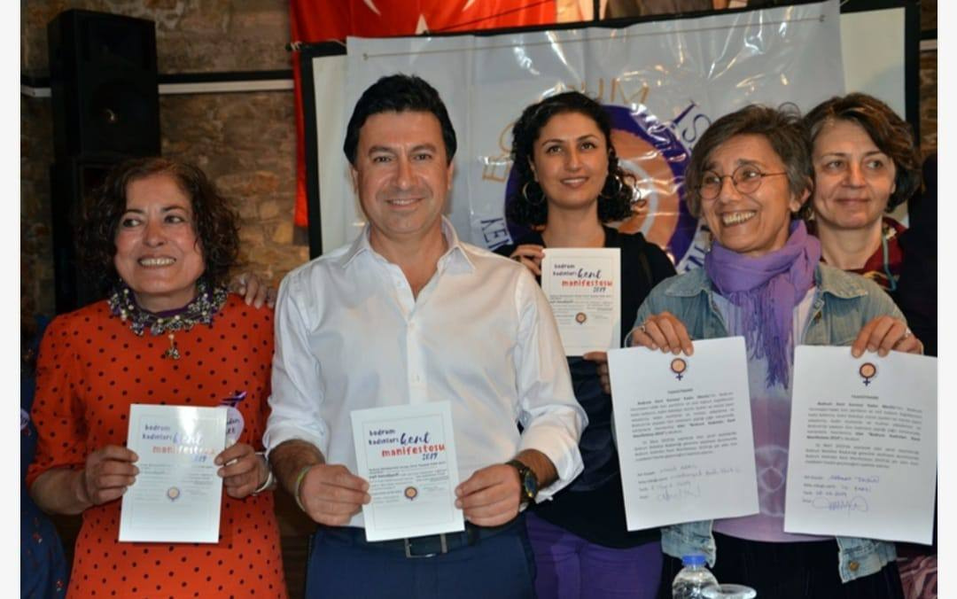 “Bodrum’da 2019 yılına kadar kadın politikalarının kağıt üzerinde var olup, hayatın ve yerel yönetimin her alanında yok sayılan bir yerdeyken, kadınlarla birlikte, katılımcı yerel yönetim uygulamalarının önünü açarak yerel yönetimin dönüştürülmesi mümkün olmuştur. Bu dönüşüm ile Bodrum’da ayrımcılık üretilmeyen bir kent yaratmak için üretilen hizmetlerin kadınlarla birlikte yapılabileceğini gördük. Kadınlar neyin mücadelesini verdiğini biliyor. Kadınlar nasıl mücadele edeceğini de biliyor. Dolayısıyla adımıza karar verilmesi değil, kendimiz karar verme organlarında yer alarak özgür, eşit ve şiddetsiz yaşamı kurmaya devam etmek için bu mücadelenin içerisinde yer almaya devam edeceğiz. Tüm bunlar ışığında, Ahmet Aras, kadınları sadece oy kullananlar olarak görmediğini, Bodrum Yarımadası’nın 56 mahallesinde bulunan tüm kadınlar ile yereli birlikte yönetmeye talip olduğunu açıkça görev yaptığı dönem boyunca göstermiş oldu. Bu nedenle bir sonraki dönem Belediye Başkan adayı olarak Ahmet Aras’ın adaylığını destekliyoruz ve tarafız.”