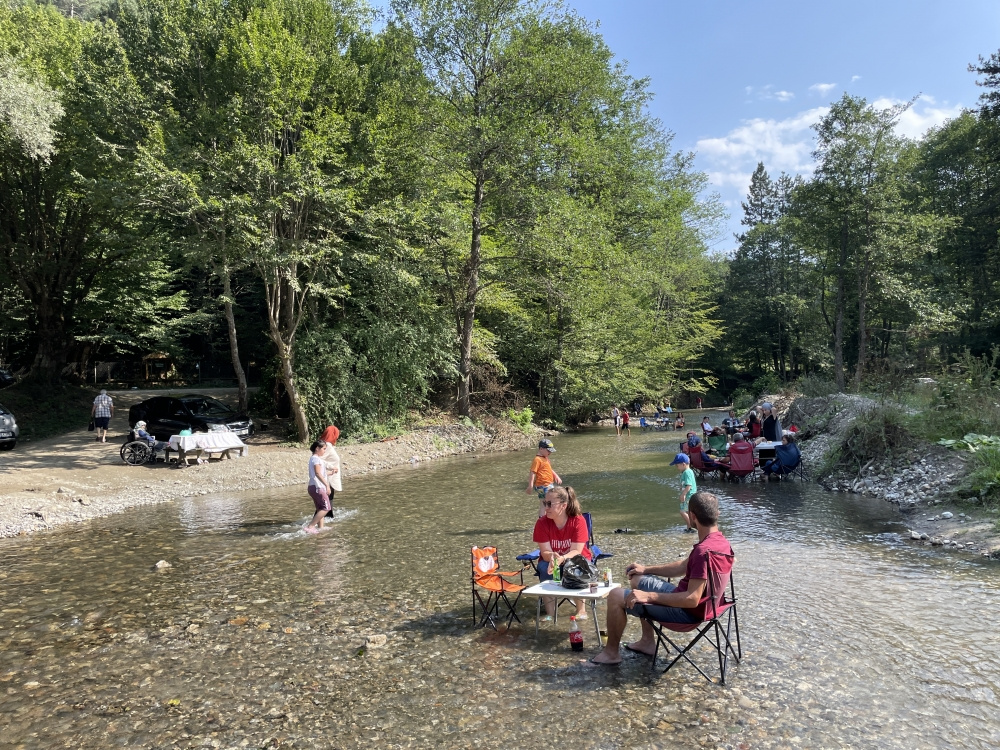 Bolu’da kentin stresinden uzaklaşmak isteyen aileler, Abant yolu üzerinde bulunan ve ormanlık alan içerisinden geçen Abant Deresi’ne geldi.