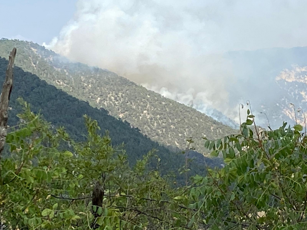 Aşağıkınık köyü mevkisindeki ormanlık alanda yıldırım düşmesi sonucu yangın çıktı.