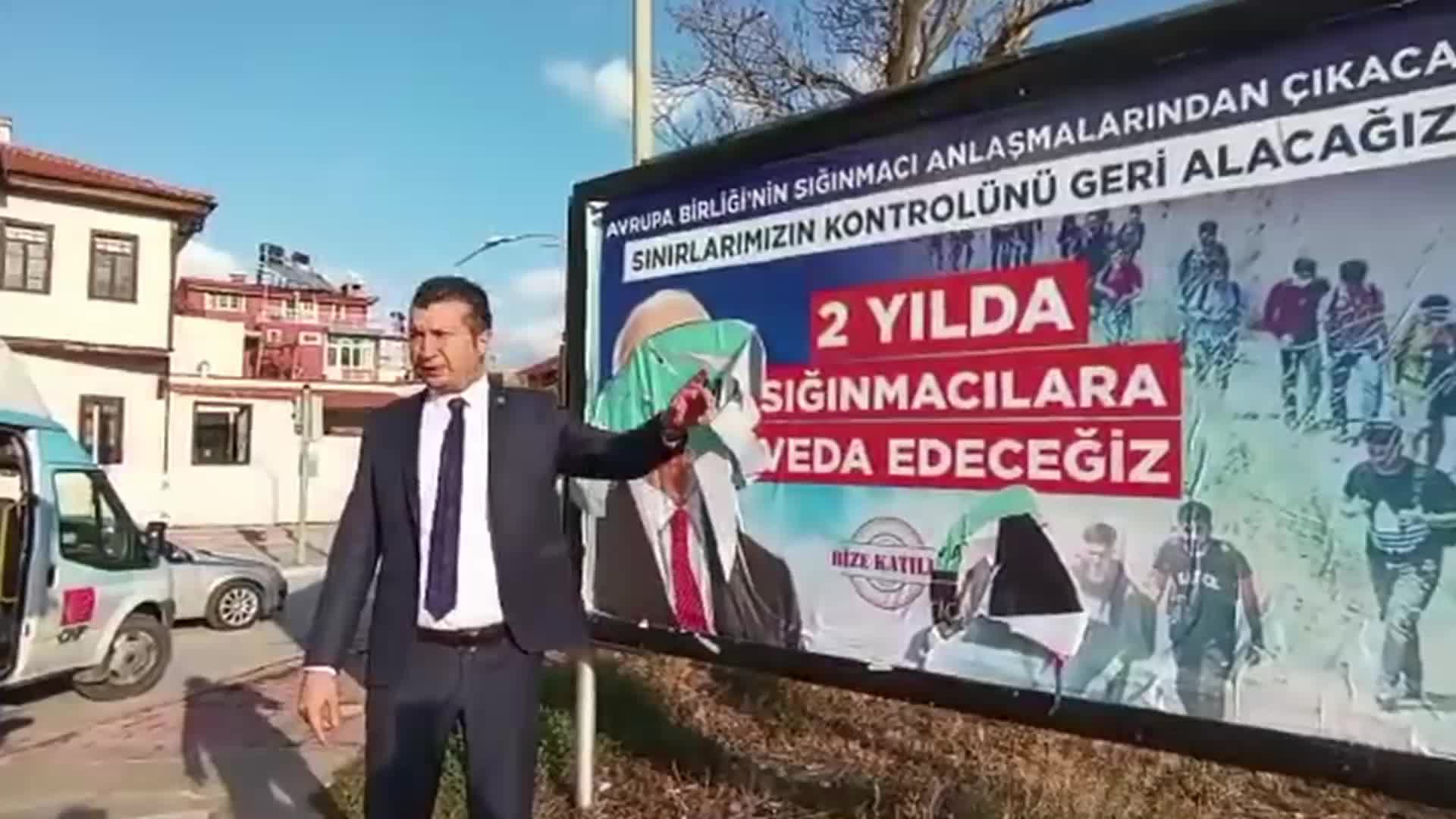 Başkanımızın Billboard’u “AB’nin mülteci anlaşmalarından çıkacağız ve sınırlarımızın kontrolünü geri alacağız.” İki yıl sonra sığınmacılarla vedalaşacağız “Maalesef saldırıya uğradılar, yok edildiler. Bizim böyle bir şeyi kabul etmemiz mümkün değil. Biz şehrimizde böyle bir düzensizlik oluşmasına karşıyız. Tüm yetkililerden talep ediyorum. Bunlar bir an önce kanun önüne çıkarıldı mı.Güvenlik kameraları çok yakınlarda.Yönetici ve amirlerinden ricam bu olayı bir an önce kamuoyuna bildirmelerini rica ediyorum.”