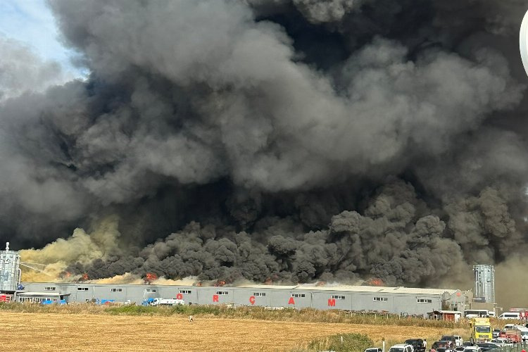 Yangının halen etkili olduğu bölgede, çevre fabrikaları tamamen tahliye edilirken oluşan yoğun duman yaklaşık 40 kilometre öteden dahi görülüyor.