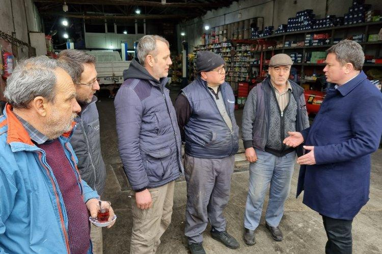 Tamirciler, “İşyerlerimizi nereye taşıyacağımızı bilmiyoruz. Bize kimse bir yer göstermedi. Bizleri çok zor durumda bıraktılar” diyerek Erkan Aydın’a dert yandı.