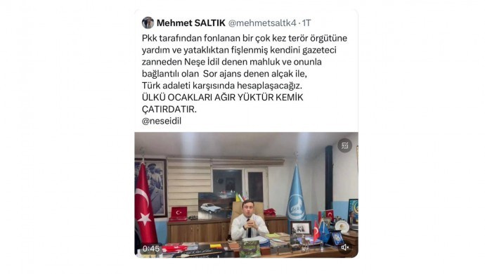 Paylaşım sonrası X hesabından videolu açıklama paylaşan Mehmet Saltık, gazeteci Neşe İdil’i hedef alarak tehditler savurdu. Saltık, 1990’lı yıllarda faili meçhul cinayetlerle hafızalara kazınan beyaz renkli Toros marka araçlara işaret ederek, “Nerede Beyaz Toroscular” başlığıyla bir video paylaştı.