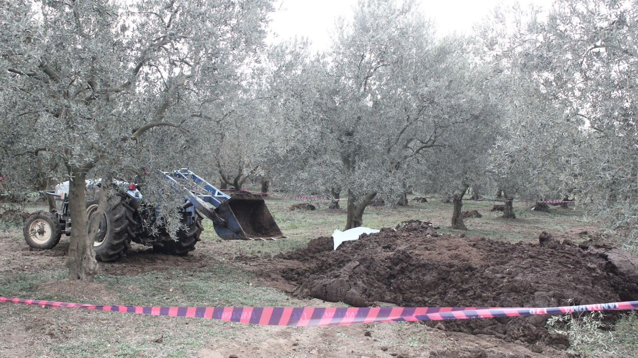 Yeniköy Mahallesi’nde oturan B.Ş., zeytinliğine dökülmesi için bir çiftliğe hayvan gübresi sipariş etti. Bahçesine getirilen gübreyi etrafa serpmek isteyen B.Ş., kovasına bir ceset sıkıştığını görünce durumu 112 acil çağrı merkezine bildirdi.