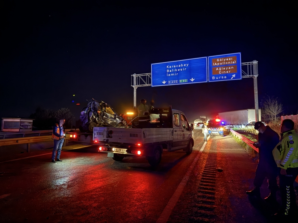 Bursa-Karacabey kara yolu Gölyazı Mahallesi yakınlarında Erkan K. idaresindeki 33 AIB 304 plakalı tıra, arkadan gelen Rıdvan Acar (74) yönetimindeki 16 AC 462 plakalı hafif ticari araç, Ahmet Demirdöver’in kullandığı 16 AVC 941 plakalı otomobil ile Mithat Demirbaş yönetimindeki 43 U 7517 plakalı tır çarptı.