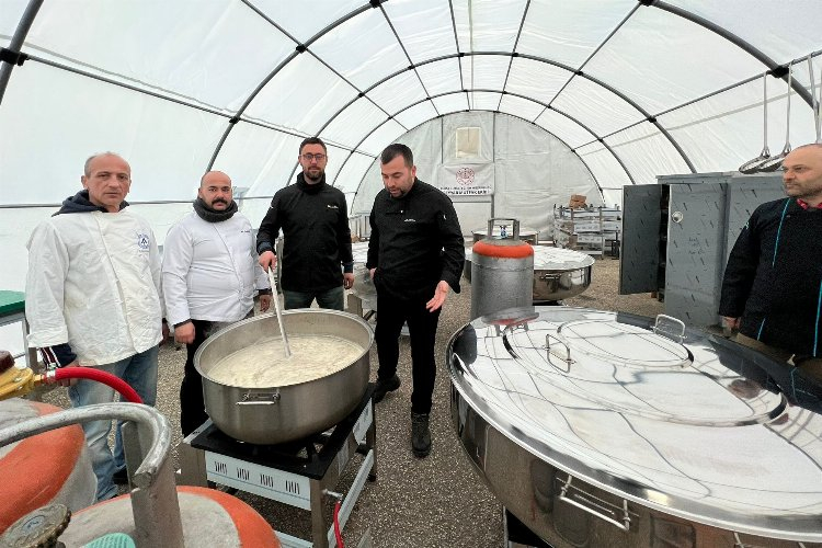 Depremden etkilenen vatandaşlara sıcak yemek desteği sağlamak için erzak yüklü 5 TIR ile yola çıkan ekip, Hatay Kerekhan’da sıcak yemek hizmetine başladı.