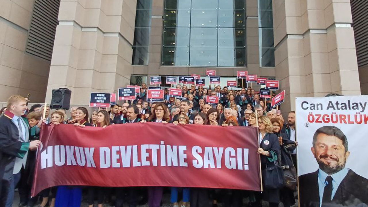 İstanbul Barosu çağrısıyla Çağlayan Adliyesi önünde yüzlerce avukat bir araya geldi. İstanbul 13. Ağır Ceza Mahkemesi’nin, AYM’nin hak ihlali kararına rağmen Can Atalay hakkında tahliye kararı vermeden dosyayı Yargıtay 3. Ceza Dairesi’ne göndermesini protesto edildi.