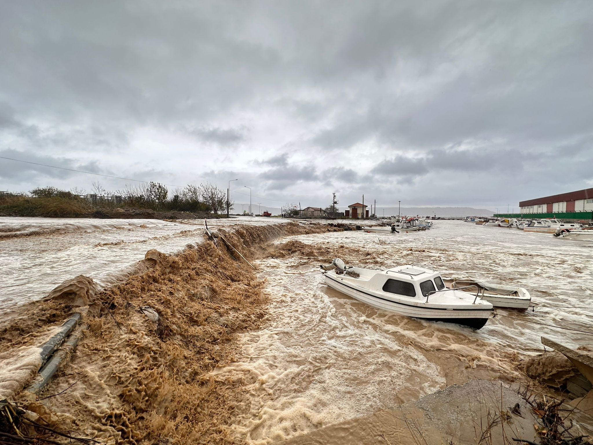 Derenin denize ulaştığı noktada bulunan balıkçı barınağındaki bazı tekneler su aldı. Teknelerinin durumuna bakmak için barınağa gelen bazı balıkçılar, su alan teknelerini temizlemeye çalıştı.