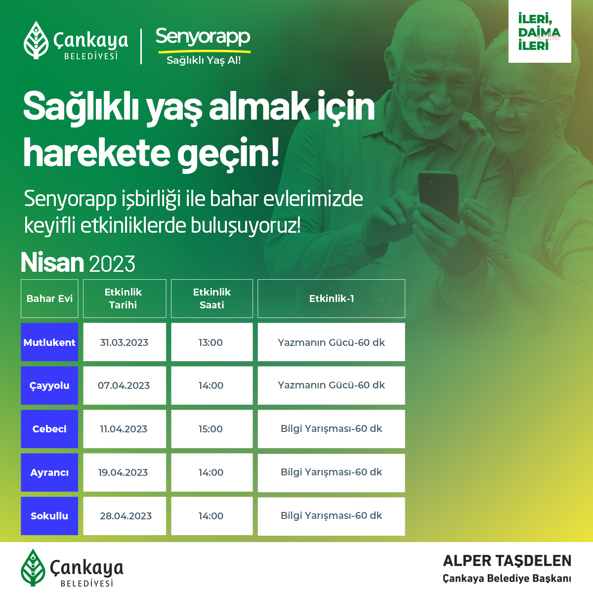 Çankaya Belediyesi’nin yaşlı vatandaşların sosyalleşmesi ve kültürel etkinliklere katılması için hizmet verdiği Baharevleri, Senyorapp iş birliğiyle sağlıklı yaşlanma konusunda seminerler düzenliyor.