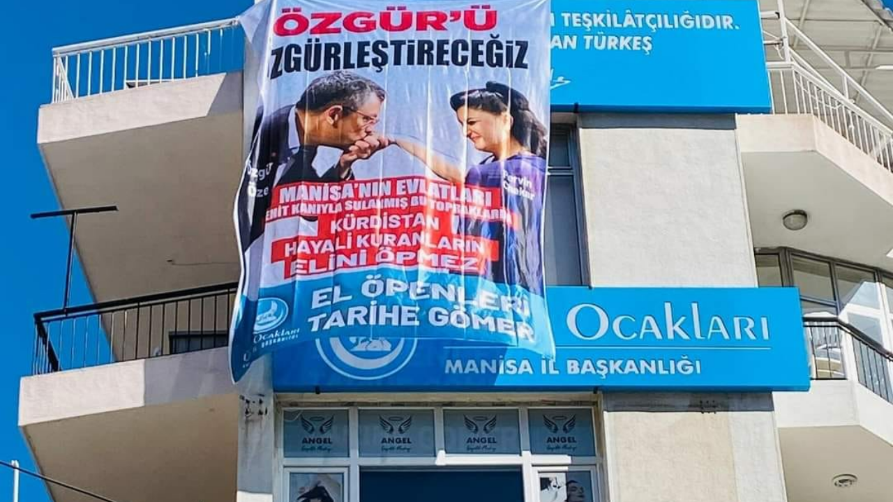 Manisa’da seçim çalışmaları için gittiği ilçelerde protesto edilen ve Cumhuriyet Halk Partisi (CHP) belediye başkan adayı Ferdi Zeyrek karşısında seçimi kazanması zor görünen Milliyetçi Hareket Partisi (MHP) Manisa belediye başkan adayı Cengiz Ergün’ün yardımına Manisa Ülkü Ocakları koştu. Manisa il binasına CHP Genel Başkanı Özgür Özel’in dünyaca ünlü Kürt soprano Pervin Chakar ve piyanist Paolo Villa’nın “Bir Opera Gecesi” dinletisine katıldığı ve Pervin Chakar’ın elini öptüğü fotoğrafın yer aldığı pankart astı.