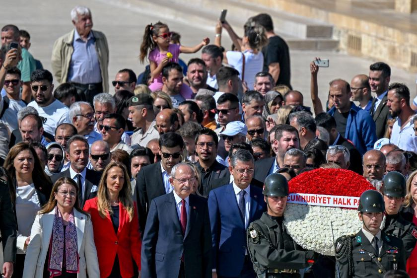 Burada bir süre Anıtkabir Komutanlığı yetkilileriyle görüşen Kılıçdaroğlu, partililerle hatıra fotoğrafı çektirdikten sonra ayrıldı.