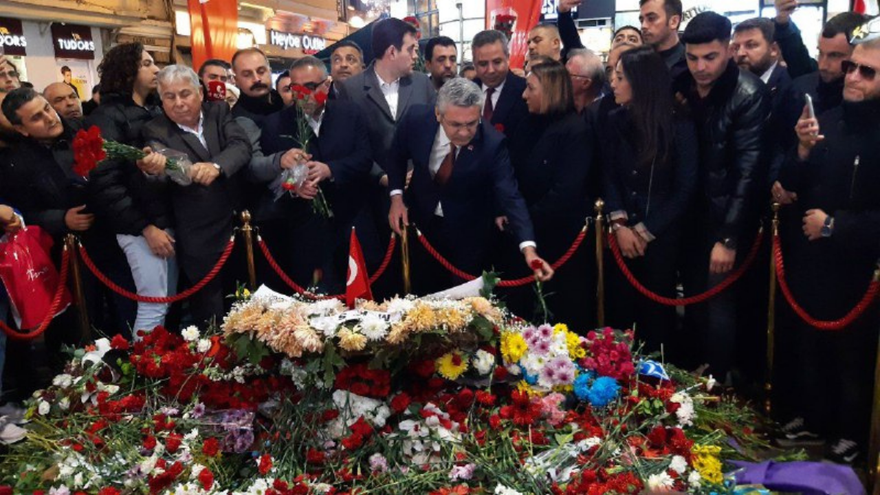 CHP Genel Başkan Yardımcısı Oğuz Can Saliçi, Taksim İstiklal Caddesi’ndeki terör saldırısında hayatını kaybedenler anısına patlamanın meydana geldiği yerde kurulan platforma il başkanlarıyla birlikte karanfiller bıraktı.